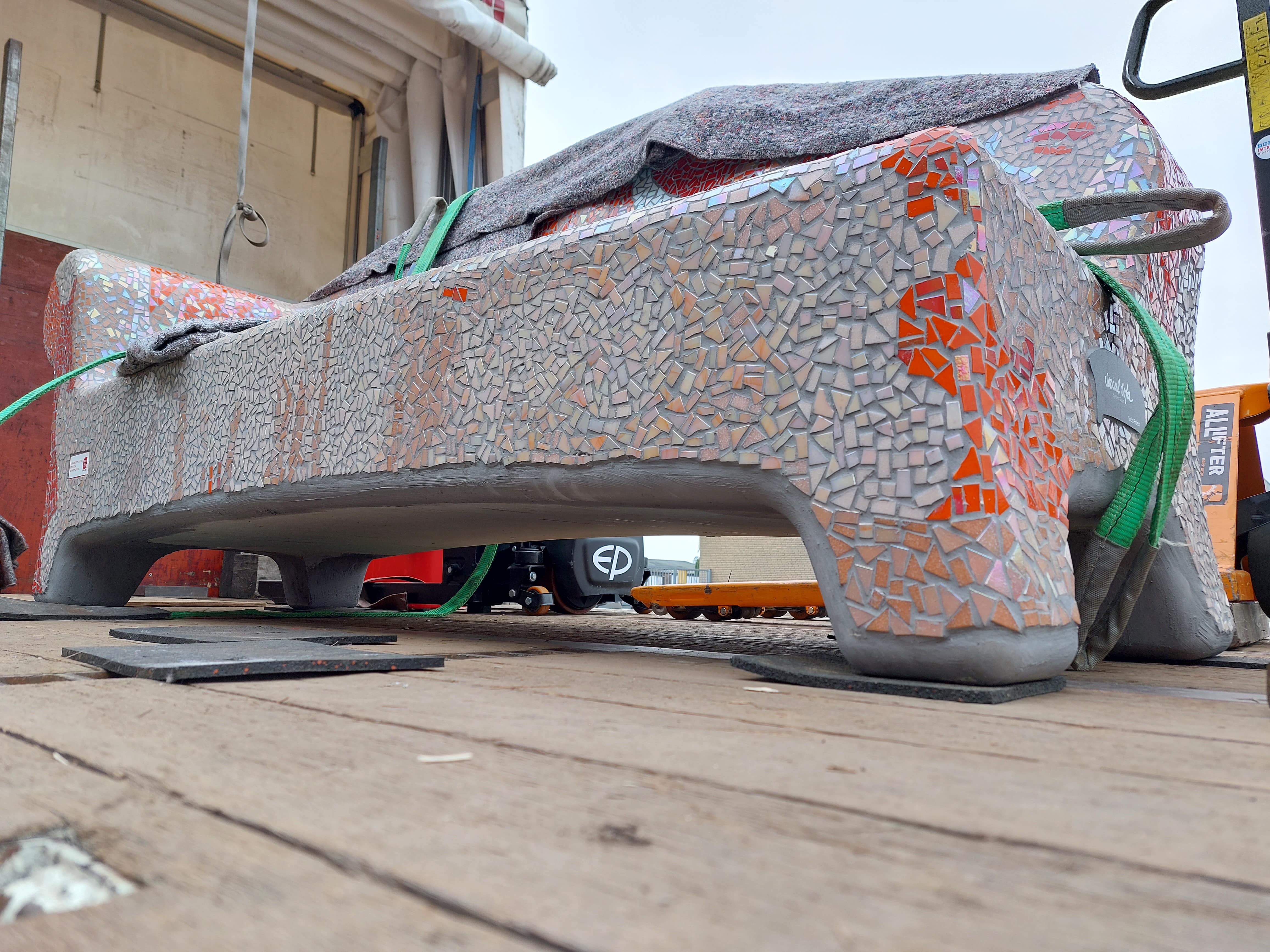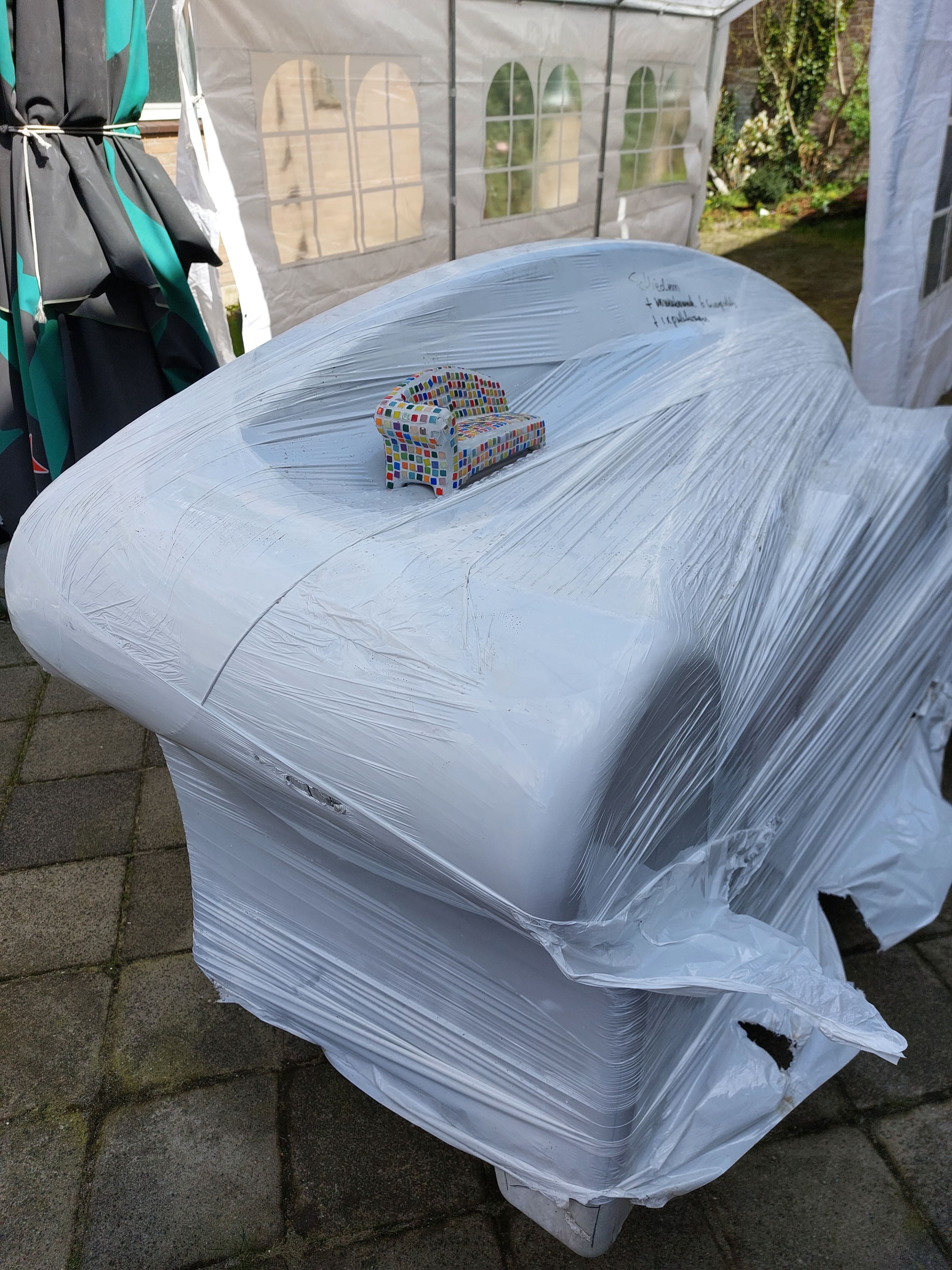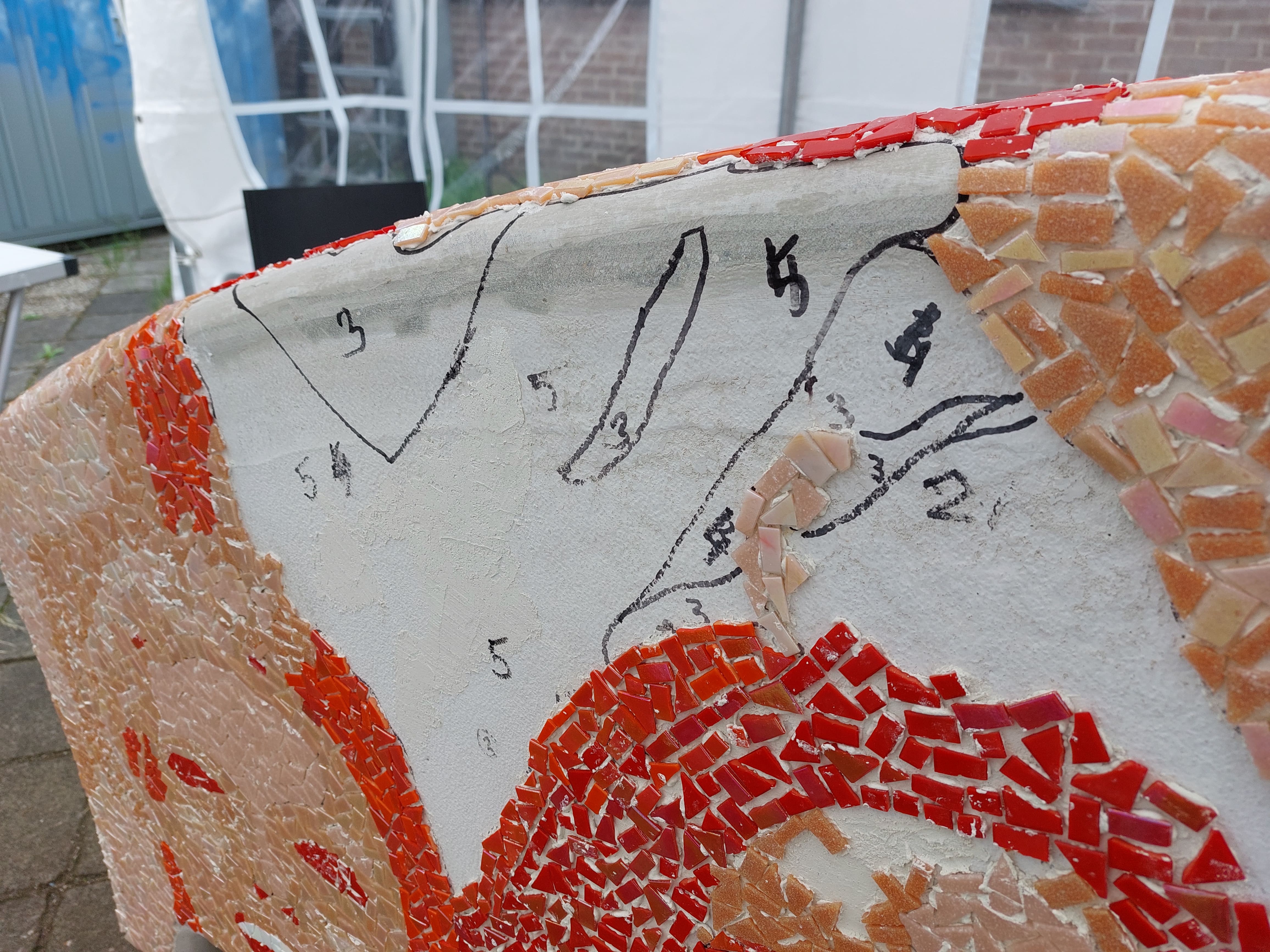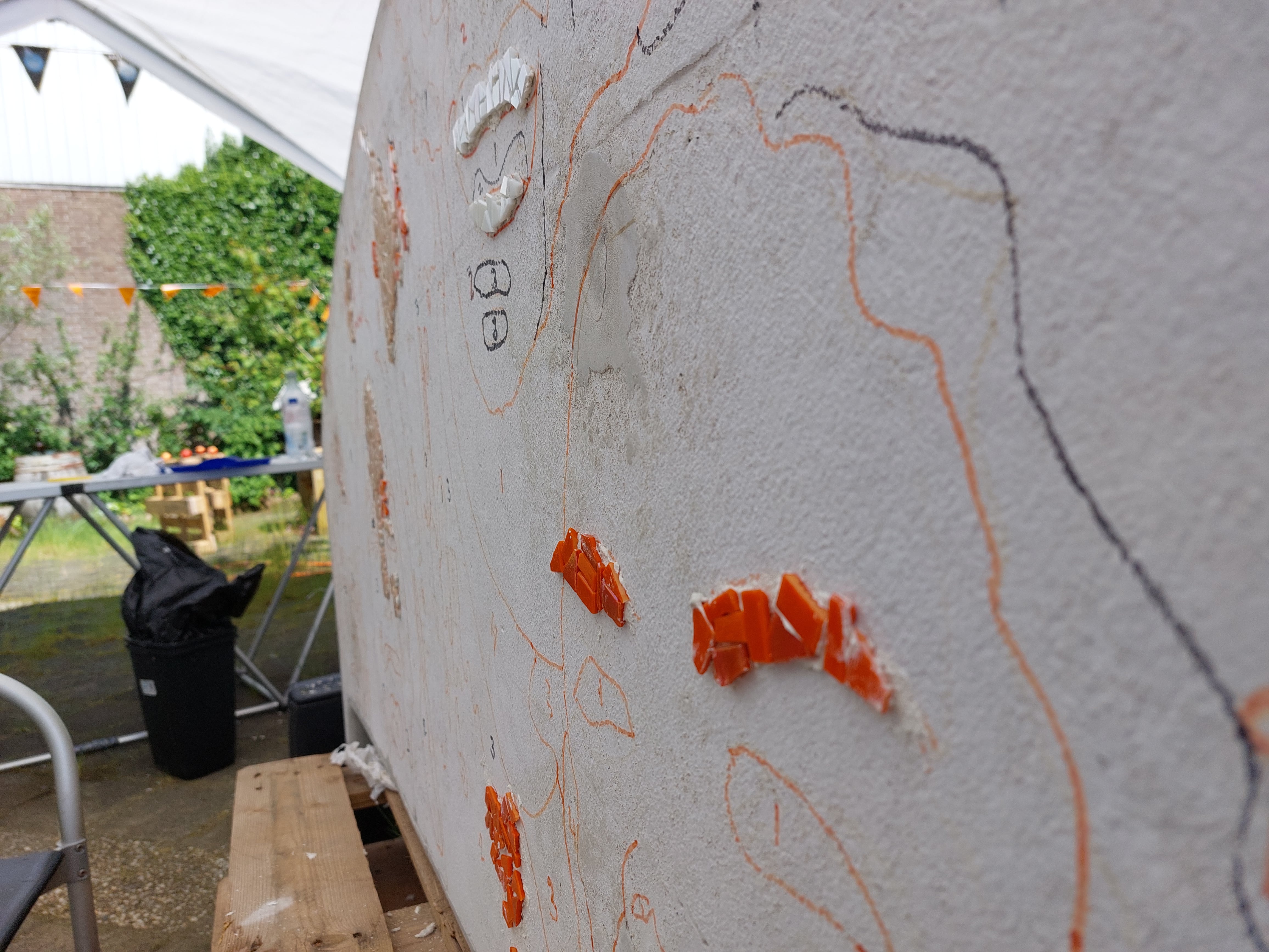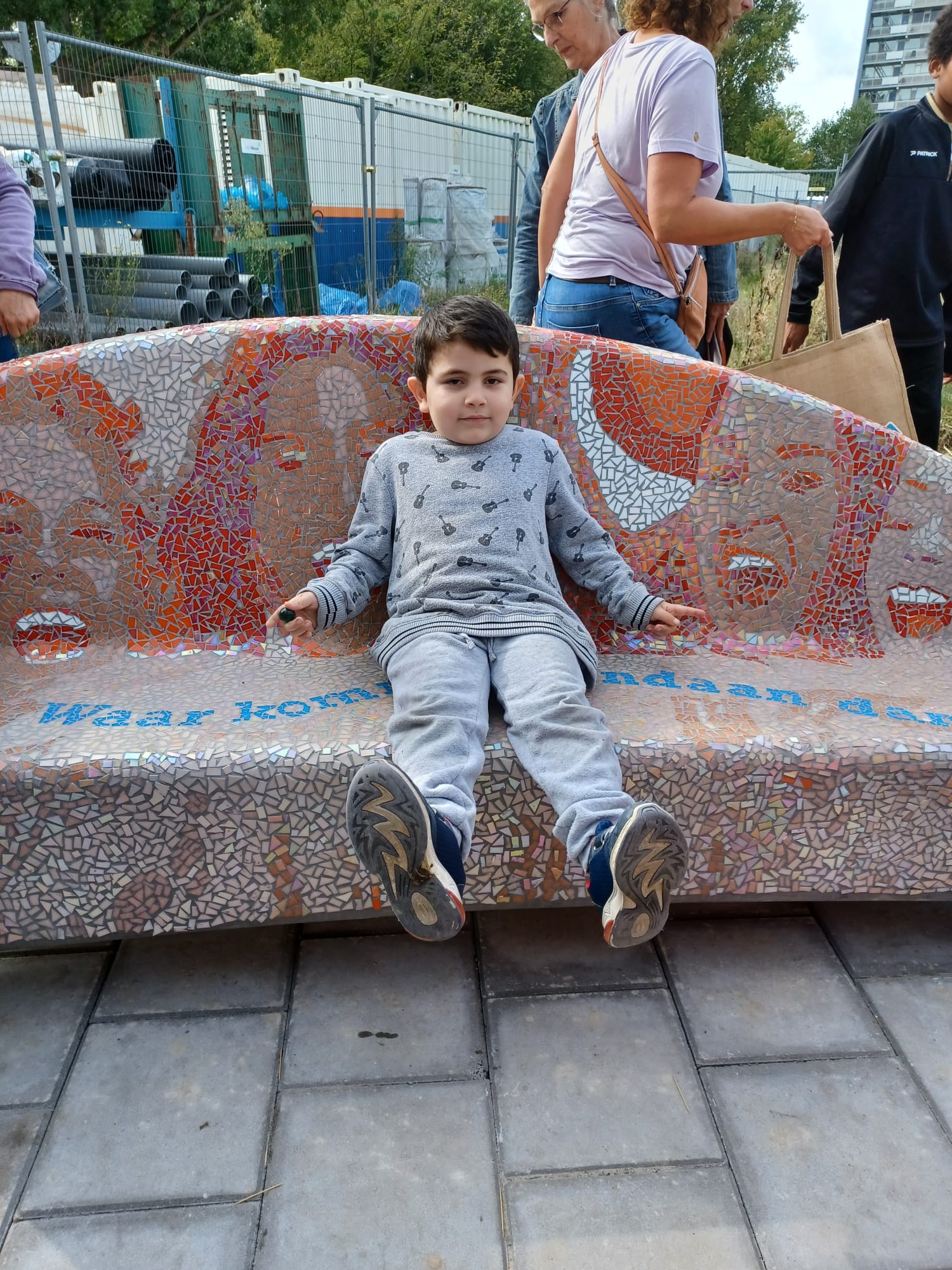 Beelden van het maakproces van de social sofa "Lachende Gezichten" die sinds 30 september 2023 op het Bachplein staat.